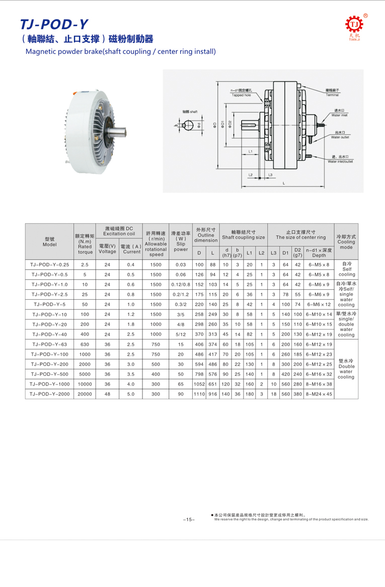 東莞天機(jī)傳動(dòng)(臺(tái)灣天機(jī)牌)水冷磁粉剎車器和風(fēng)冷磁粉制動(dòng)器都是工業(yè)制動(dòng)器中的一種,使用的DC24V直流電壓,操作更加安全,使用簡(jiǎn)單,維護(hù)容易。