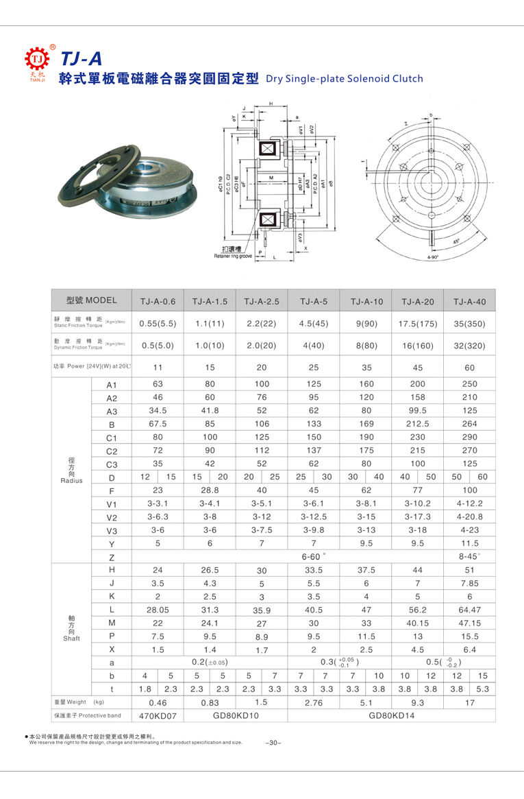 單片電磁離合器(突圓型電磁離合器)