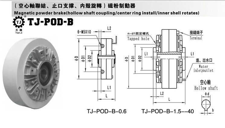 東莞天機(jī)傳動(dòng)生產(chǎn)的內(nèi)空心磁粉制動(dòng)器剎車器有6NM~2000NM的扭矩對(duì)應(yīng)的規(guī)格為:0.6~200KG