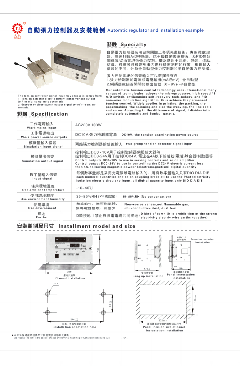 以下是卷徑型半自動(dòng)張力控制器,演算型半自動(dòng)張力控制器具體規(guī)格及安裝尺寸圖: